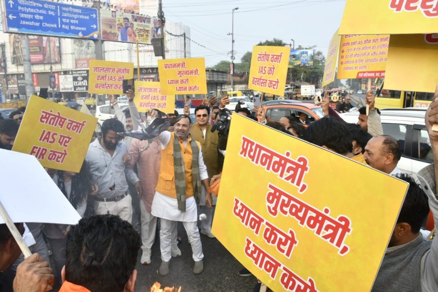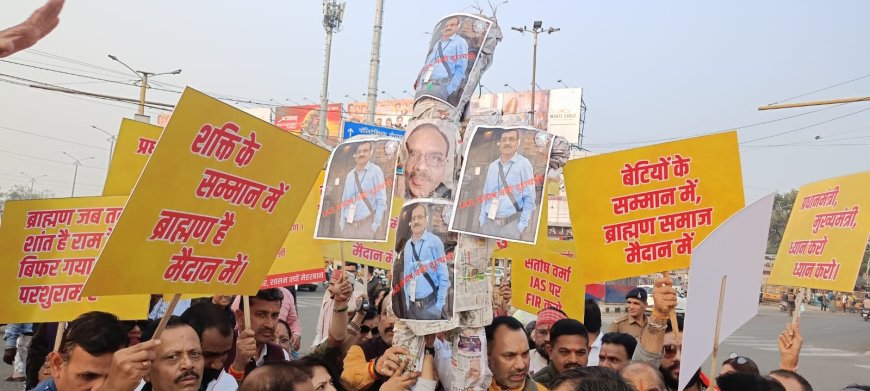 आईएएस संतोष वर्मा के खिलाफ ब्राह्मण समाज सड़क पर उतर गया है। ब्राह्मण समाज की महिलाओं और बेटियों को लेकर की गई की गई आपत्तिजनक टिप्पणी के खिलाफ राजधानी के रोशनपुरा चौराहे पर ब्राह्मण समाज ने जमकर नारेबाजी करते हुए बर्खास्तगी की मांग उठाई। विरोध के दौरान प्रदर्शनकारियों ने संतोष वर्मा का पुतला जलाकर अपना आक्रोश जताया।