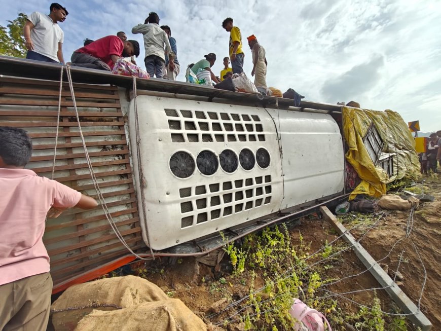 बड़वानी... बस पलटी, एक की मौत... 50 यात्री लहूलुहान