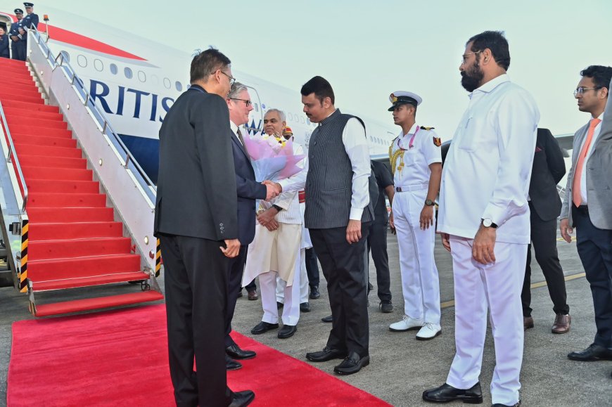 ब्रिटिश प्रधानमंत्री किएर स्टार्मर दो दिवसीय भारत यात्रा पर बुधवार को मुंबई पहुंचे। इस दो दिवसीय यात्रा में भारत और ब्रिटेन के बीच व्यापार, निवेश, और प्रौद्योगिकी संबंधों समेत द्विपक्षीय साझेदारी के सभी पहलुओं पर चर्चा होगी। दरअसल, पीएम नरेंद्र मोदी के निमंत्रण पर ब्रिटिश पीएम भारत यात्रा पर आए हैं।