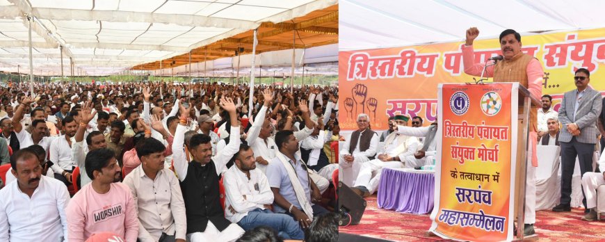 मध्यप्रदेश की राजधानी भोपाल के जंबूरी मैदान में सरपंच महासम्मेलन का आयोजन किया गया। जहां सीएम डॉ. मोहन यादव ने दिल्ली में हुए ब्लास्ट में मारे गए लोगों के लिए दो मिनट का मौन रखवाकर श्रद्धांजलि अर्पित की। इसके बाद सीएम ने सरपंच महासम्मेलन को संबोधित करते हुए पंचायतों और ग्रामीण विकास पर जोर देते हुए कहा- त्रिस्तरीय शासन प्रणाली में पंचायतों को जितनी शक्ति है, वह बड़े पदधारकों के पास भी नहीं है और प्रत्येक सरपंच अपनी पंचायत के लिए बड़ा योगदान दे सकता है। महासम्मेलन के दौरान मुख्यमंत्री ने पंचायतों के लिए कई घोषणाएं भी कीं। उन्होंने ऐलान किया किया कि मध्यप्रदेश की हर पंचायत को 50-50 हजार रुपए की राशि प्रदान की जाएगी। साथ ही यह भी कहा कि वर्ष 2026 को कृषि आधारित उद्योग वर्ष के रूप में घोषित किया जाएगा और कृषि उद्योग को बढ़ावा दिया जाएगा।