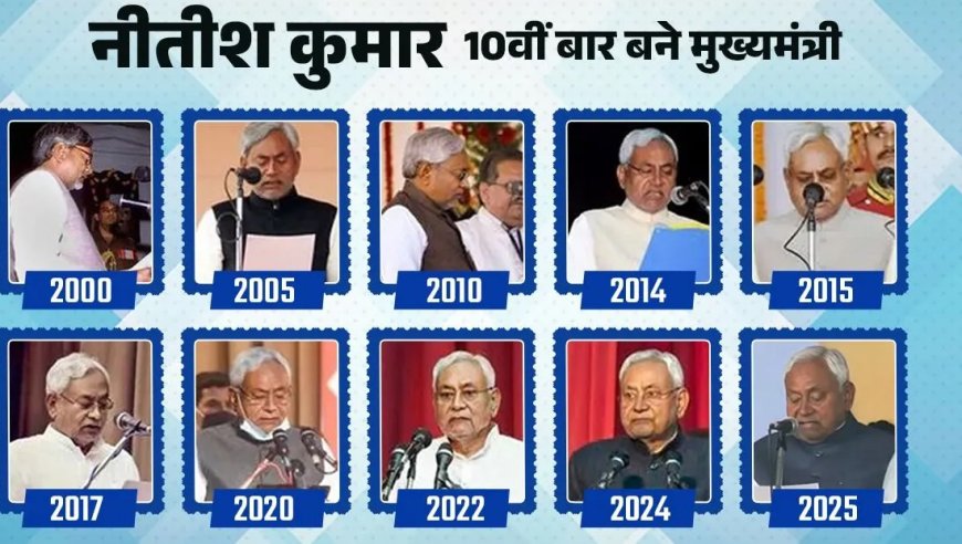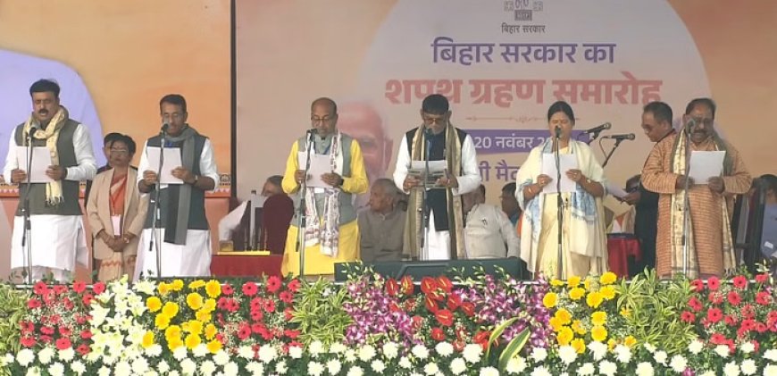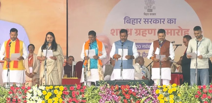 बिहार की राजनीति में एक और ऐतिहासिक क्षण जुड़ गया, जब नीतीश कुमार ने दसवीं बार मुख्यमंत्री पद की शपथ ली। पटना के गांधी मैदान में आयोजित भव्य समारोह में प्रधानमंत्री नरेंद्र मोदी, गृह मंत्री अमित शाह और भाजपा अध्यक्ष जेपी नड्डा सहित कई केंद्रीय नेता मौजूद रहे।