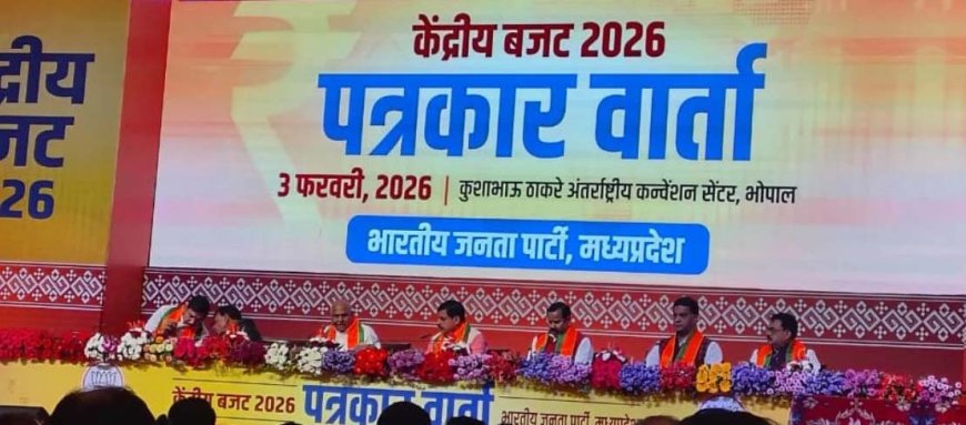 केंद्रीय बजट 2026-27 पर सीएम डॉ. मोहन यादव ने आज मंगलवार को कुशाभाऊ ठाकरे सेंटर में पत्रकारवार्ता आयोजित कर खूबियां गिनाईं। इस दौरान भाजपा के प्रदेश अध्यक्ष हेमंत खंडेलवाल, प्रदेश प्रभारी डॉ. महेंद्र सिंह, डिप्टी सीएम एवं वित्त मंत्री जगदीश देवड़ा भी मौजूद रहे।