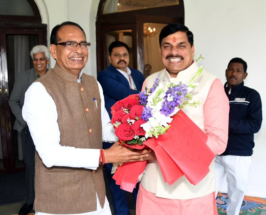 मध्यप्रदेश के मुख्यमंत्री डॉ. मोहन यादव से केंद्रीय कृषि एवं किसान कल्याण और ग्रामीण विकास मंत्री शिवराज सिंह चौहान ने मुख्यमंत्री निवास में सौजन्य भेंट की। सीएम ने बताया कि आज यानी मंगलवार को भोपाल निवास पर केंद्रीय मंत्री एवं भाईसाहब शिवराज सिंह चौहान ने आत्मीय भेंट की।