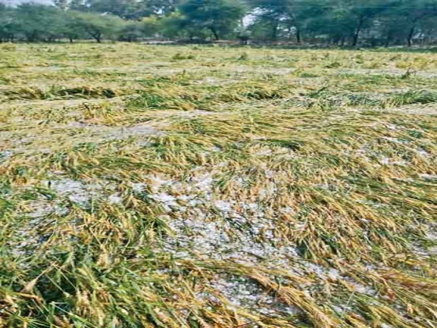 ओलावृष्टि और तेज हवाओं के कारण खेतों में खड़ी फसलें पूरी तरह आड़ी हो गई हैं।