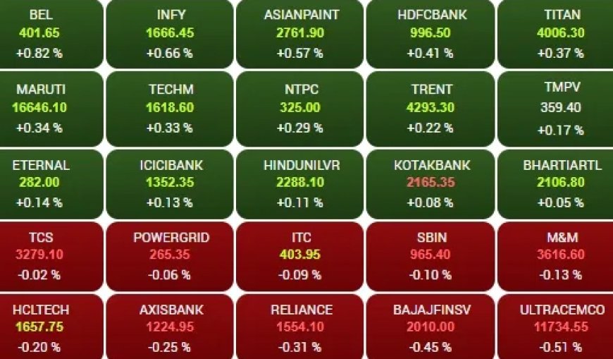 सेंसेक्स की 30 कंपनियों में से टाटा स्टील, इटरनल, भारत इलेक्ट्रॉनिक्स, कोटक महिंद्रा बैंक, ट्रेंट और मारुति सबसे बड़े लाभ कमाने वालों में शामिल थीं। हालांकि, अदाणी पोर्ट्स, पावर ग्रिड, बजाज फिनसर्व और एक्सिस बैंक पिछड़ने वालों में शामिल थे।