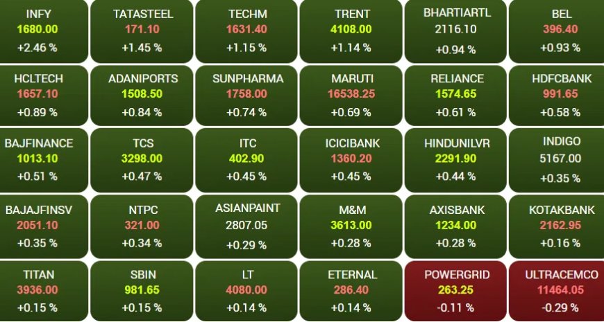 भारतीय बाजार सोमवार को बढ़त के साथ खुला। शुरुआती कारोबार में 30 शेयरों वाला सेंसेक्स ने लंबी छलांग लगाई। वहीं 50 शेयरों वाला निफ्टी में भी उछाल देखी गई। शुरुआती कारोबार में रुपया अमेरिकी डॉलर के मुकाबले 22 पैसे बढ़कर 89.45 पर पहुंच गया। दरअसल, भारतीय शेयर मार्केट में सप्ताह के पहले कारोबारी सेशन सोमवार के कारोबारी दिन की शुरुआत पॉजिटिव रही। प्रमुख बेंचमॉर्क इंडेक्स बीएसई सेंसेक्स और एनएसई निफ्टी 50 हरे निशान पर ट्रेड करते हुए ओपन हुए। 30 शेयरों वाला बीएसई सेंसेक्स इंडेक्स 216.54 अंक या 0.25 प्रतिशत की तेजी के साथ 85,145.90 अंक तो वहीं, एनएसई निफ्टी 50 89.45 अंक या 0.34 फीसदी उछलकर 26,055.85 के लेवल पर ओपन हुआ। सुबह सेंसेक्स 433 अंक की तेजी के साथ 85,362 अंक पर कारोबार कर रहा था। वहीं निफ्टी 50 136 अंक उछलकर 26,103 के लेवल पर ट्रेड कर रही थी।