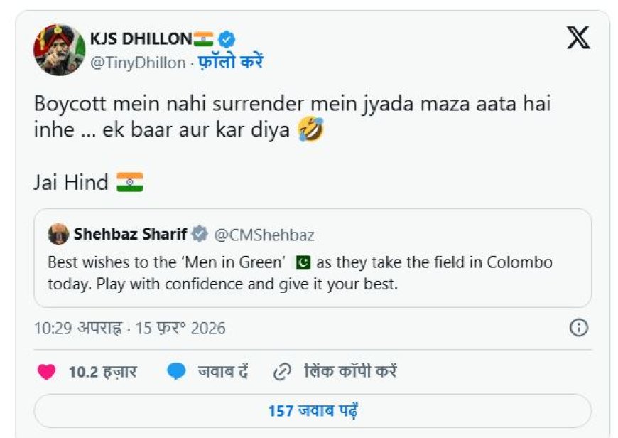 भारतीय क्रिकेट टीम द्वारा पाकिस्तान पर हालिया जीत के बाद सोशल मीडिया पर एक अलग ही जंग छिड़ गई है। इस बार मोर्चा संभाला है भारतीय सेना के पूर्व वरिष्ठ अधिकारी लेफ्टिनेंट जनरल (रिटायर्ड) केजेएस ढिल्लों ने। उन्होंने पाकिस्तान के प्रधानमंत्री शहबाज शरीफ के एक पुराने संदर्भ वाले पोस्ट पर ऐसा तीखा पलटवार किया है, जो अब इंटरनेट पर वायरल हो रहा है।