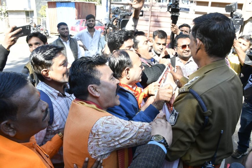 इस दौरान पुलिस अधिकारियों और संगठन कार्यकर्ताओं के बीच तीखी बहस और धक्का-मुक्की की स्थिति बन गई।सुरक्षा के कड़े इंतजामकिसी भी अप्रिय घटना से निपटने के लिए पुलिस प्रशासन ने पहले ही सुरक्षा के व्यापक इंतजाम किए थे। विरोध स्थल पर क्विक रिस्पांस फोर्स (QRF) के 40 से ज्यादा जवान और 25-30 स्थानीय पुलिसकर्मी तैनात रहे। पुलिस बल ने स्थिति को नियंत्रण में रखते हुए कार्यकर्ताओं को तितर-बितर किया और क्षेत्र में शांति बहाल की।