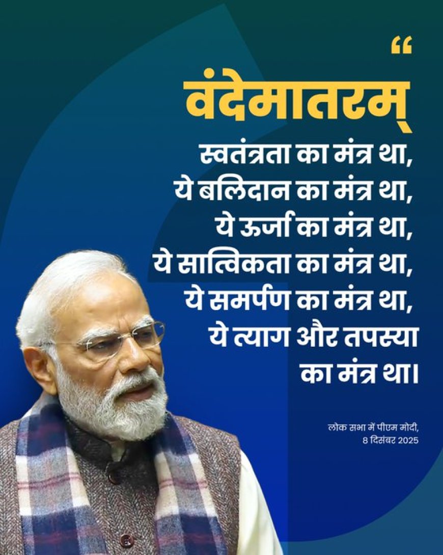 संसद के शीतकालीन सत्र के छठे दिन सोमवार को लोकसभा में वंदे मातरम के 150 साल पूरे पर चर्चा हो रही है। पीएम नरेंद्र मोदी ने चर्चा की शुरुआत की। उन्होंने कहा- वंदे मातरम् के 150 वर्ष पूरे होने पर बहस गर्व की बात है। जिसने हमें त्याग और तपस्या का मार्ग दिखाया था।