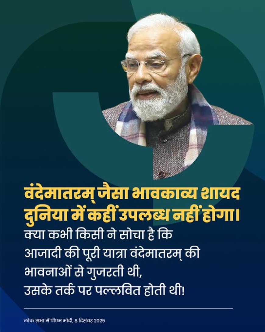 पीएम मोदी ने कहा- गर्व की बात है कि वंदे मातरम के 150 साल पूरे होने पर इस ऐतिहासिक अवसर के साक्षी बन रहे हैं। एक ऐसा काल खंड, जो हमारे सामने इतिहास की अनगिनित घटनाओं को सामने लेकर आता है। ये चर्चा सदन की प्रतिबद्धता को तो प्रकट करेगा ही, आने वाली पीढ़ी के लिए भी शिक्षा का कारण बन सकती है।
