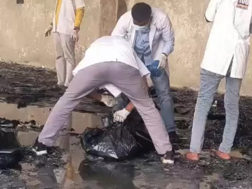 केमिकल-पटाखा फैक्ट्री में लगी आग में मजदूरों के शव बुरी तरह जल गए हैं। कई शवों के कंकाल भर बचे हैं। बॉडी पार्ट्स के टुकड़े बिखरे मिले। रेस्क्यू टीम ने इन टुकड़ों को पॉलीथीन में इकट्ठे किए।