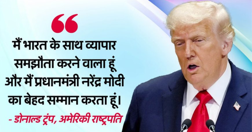ट्रंप ने भाषण के दौरान भारत से जल्द व्यापार समझौता पूरा होने के संकेत दिए। उन्होंने कहा कि भारत और अमेरिका जल्द ही व्यापार समझौते पर हस्ताक्षर करेंगे। हालांकि, इस बीच उन्होंने आयात शुल्क को अमेरिका की ताकत के तौर पर भी दर्शाया। ट्रंप ने एक बार फिर पुराना राग अलापते हुए कहा-अगर आप भारत-पाकिस्तान को देखें तो मैं भारत के साथ व्यापार समझौता करने वाला हूं और मैं पीएम नरेंद्र मोदी का बेहद सम्मान करता हूं।