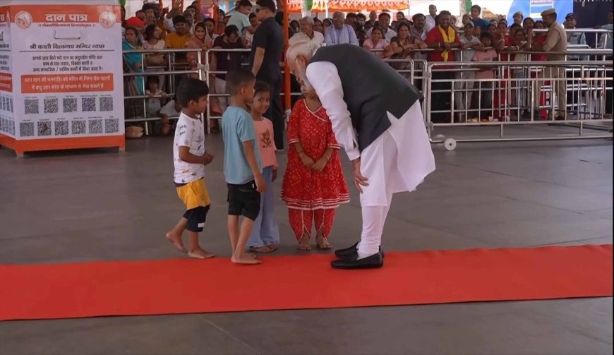 पीएम मोदी ने काशी विश्वनाथ धाम परिसर में आए बच्चों से बातचीत की। उन्होंने बच्चों से कुछ पूछा तो वे मुस्कुराते दिखे। वहीं मंदिर परिसर में मौजूद श्रद्धालु पीएम की झलक पाकर प्रसन्न दिखे।